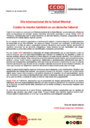 Cada 10 de octubre se conmemora el Día Internacional de la Salud Mental, una jornada para reflexionar sobre la importancia de proteger nuestro bienestar emocional, psicológico y social. Desde CCOO en Telefónica, reivindicamos que la salud mental es un derecho laboral y humano, inseparable de unas condiciones de trabajo dignas, seguras y justas.