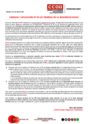 CCOO consigue que Seguridad Social aclare favorablemente la plena vigencia y aplicación de la Disposición Transitoria 34 de la Ley General de Seguridad Social.